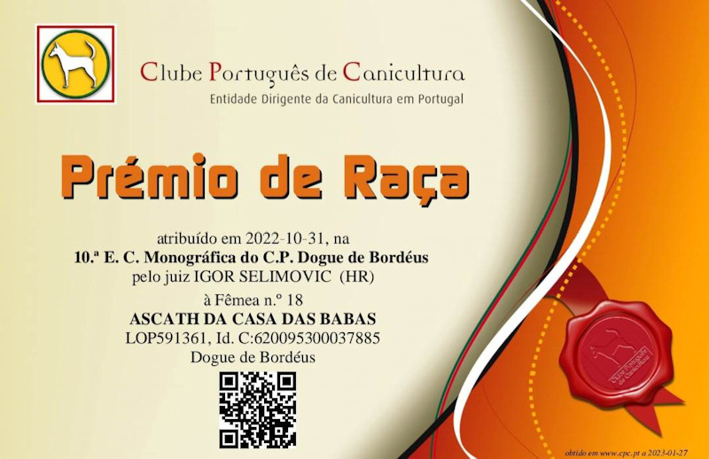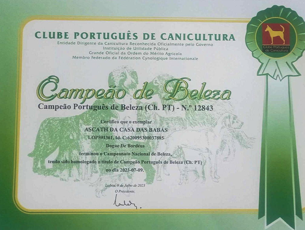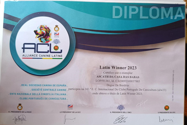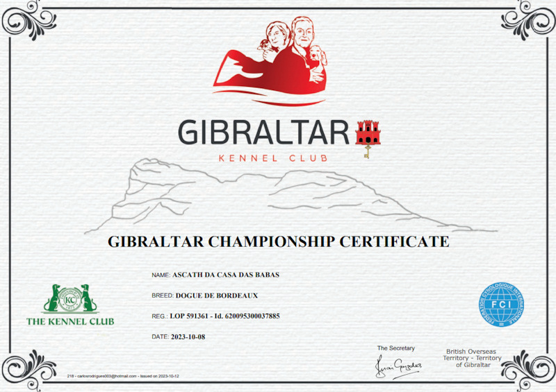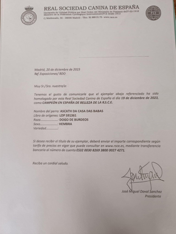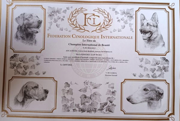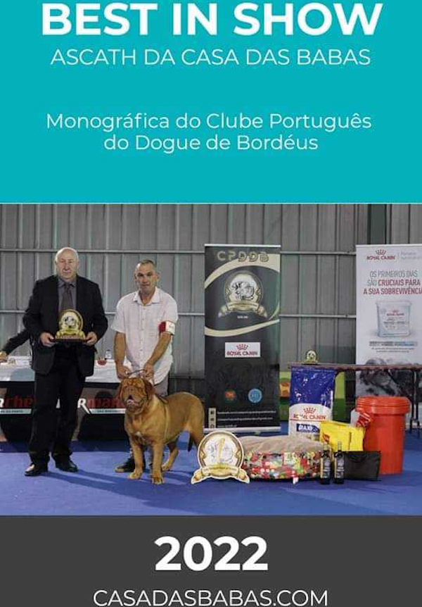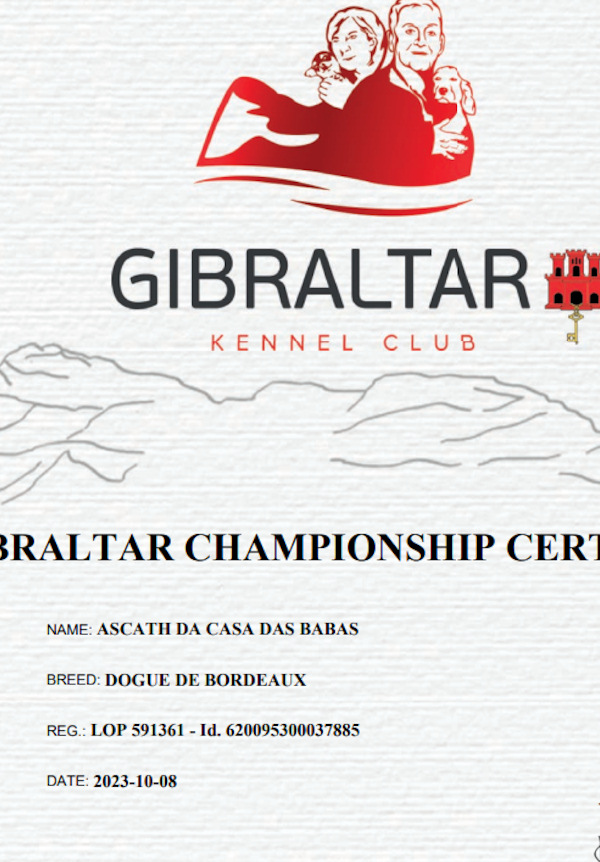 Spain Champion - Spain Super-Champion - Portugal Champion ( Ch PT ) / Gibraltar ( Ch GIB ) and Spain ( Ch ES ). BEST IN SHOW Monographic CPDDB 2022 - CH International