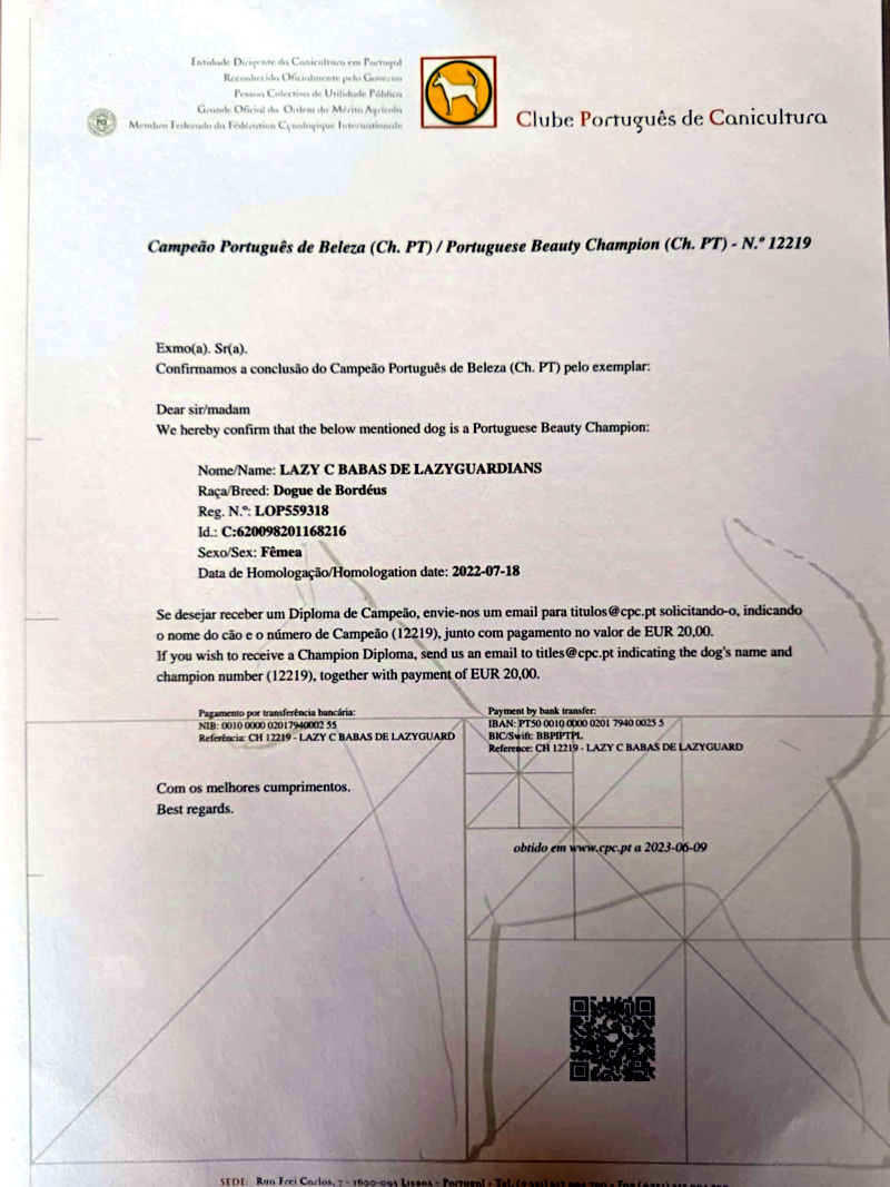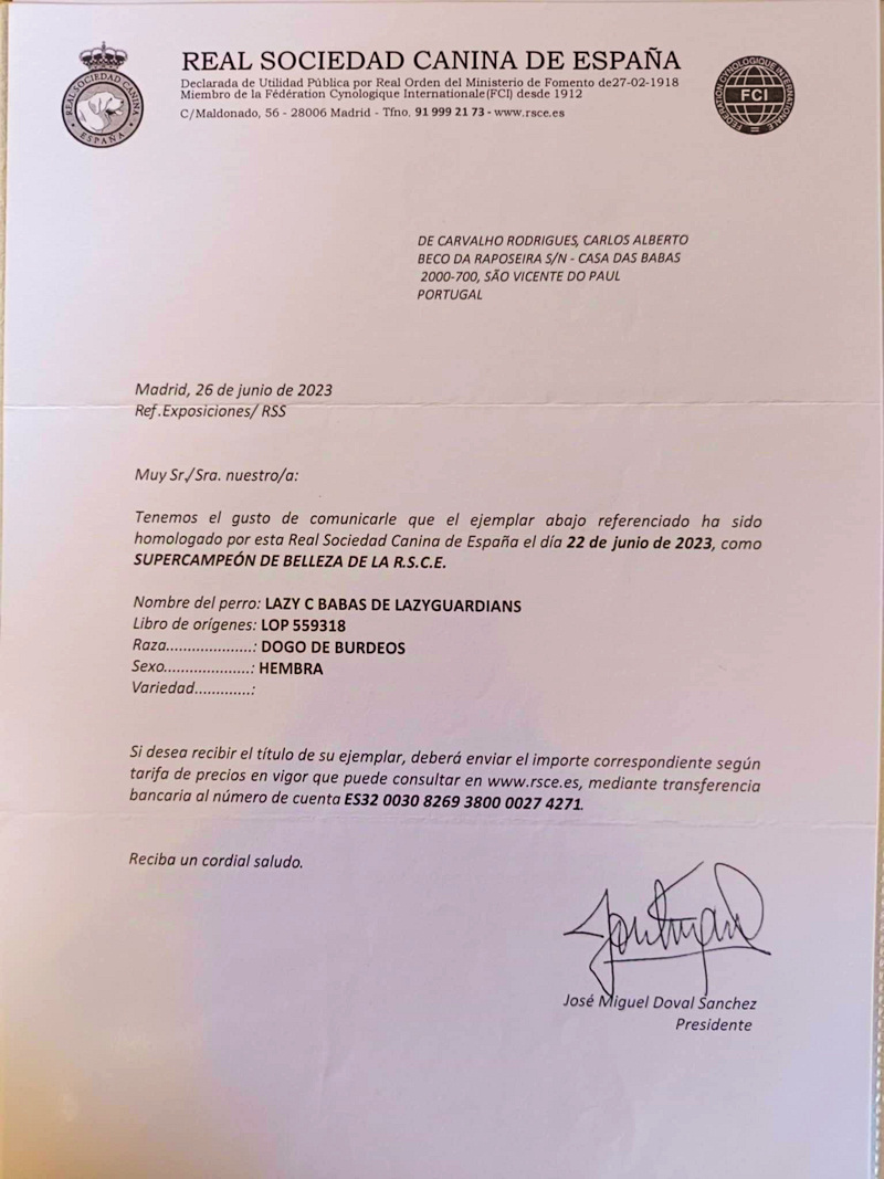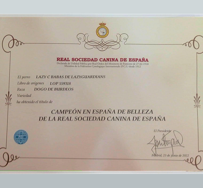 Lazy C BABAS de Lazyguardians Ch Portugal - Ch Spain - Ch Gibraltar - Ch International - Ch Iberian - GCh Portugal - GCh Spain